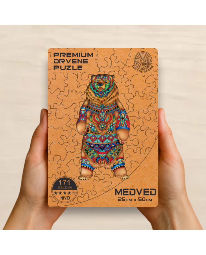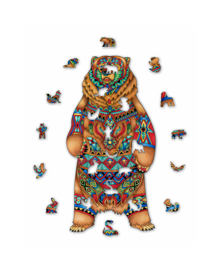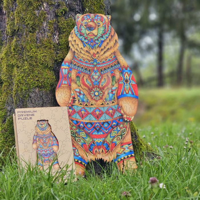The Bear wooden puzzle blends natural wood, art, and powerful symbolism. Each piece is precisely cut and uniquely shaped to make the experience challenging, calming, and visually impressive.